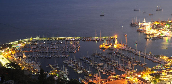 Gelişmiş olmasına rağmen, Körfezin batısında, yaklaşık 10 km uzanan, Marmaris aynı zamanda kasabayı çevreleyen, çam ağaçları sayesinde tüm yıl boyunca yeşil olmasıyla ünlüdür. Körfezin etrafında birçok sahil, antik şehirler ve sahil köyleri günübirlik turlar için idealdir. Yat limanı, Türkiye’nin en büyük ve en güzel limanı olması nedeniyle, turkuaz kıyılar boyunca en işlek charter limanıdır.